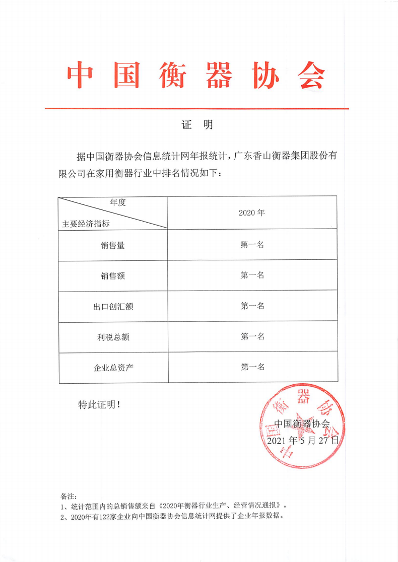 香山衡器集團(tuán)營(yíng)業(yè)執(zhí)照